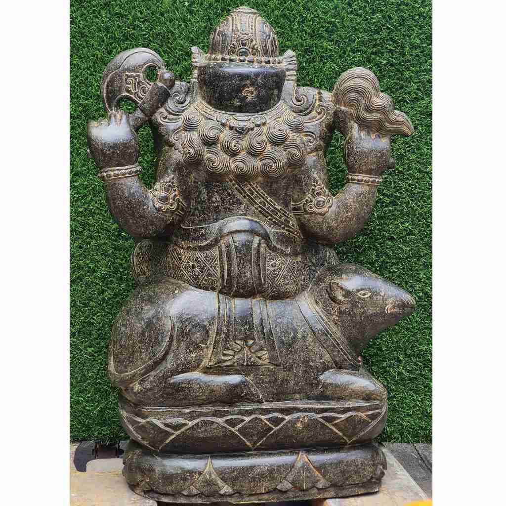 Sitzender Ganesha auf Maus Fluss Stein 71 cm