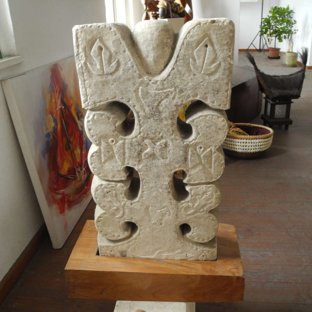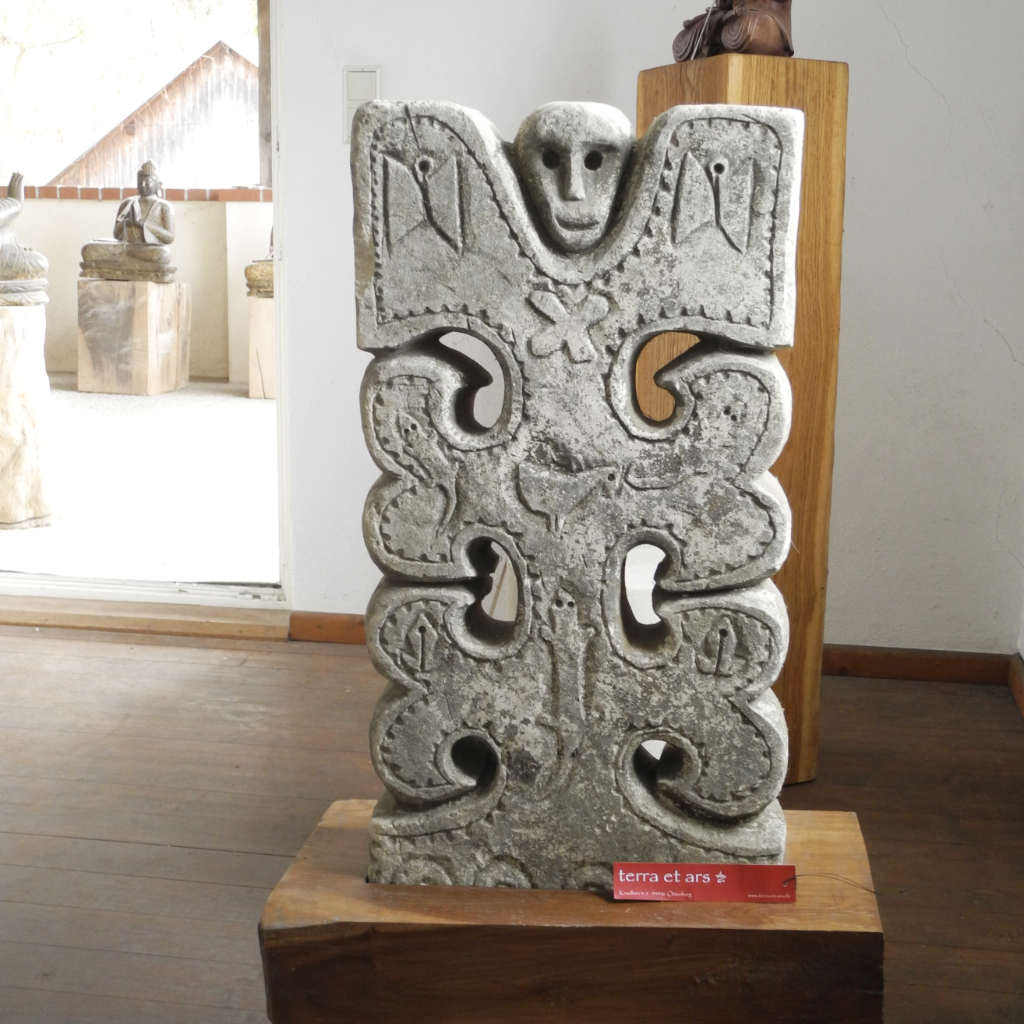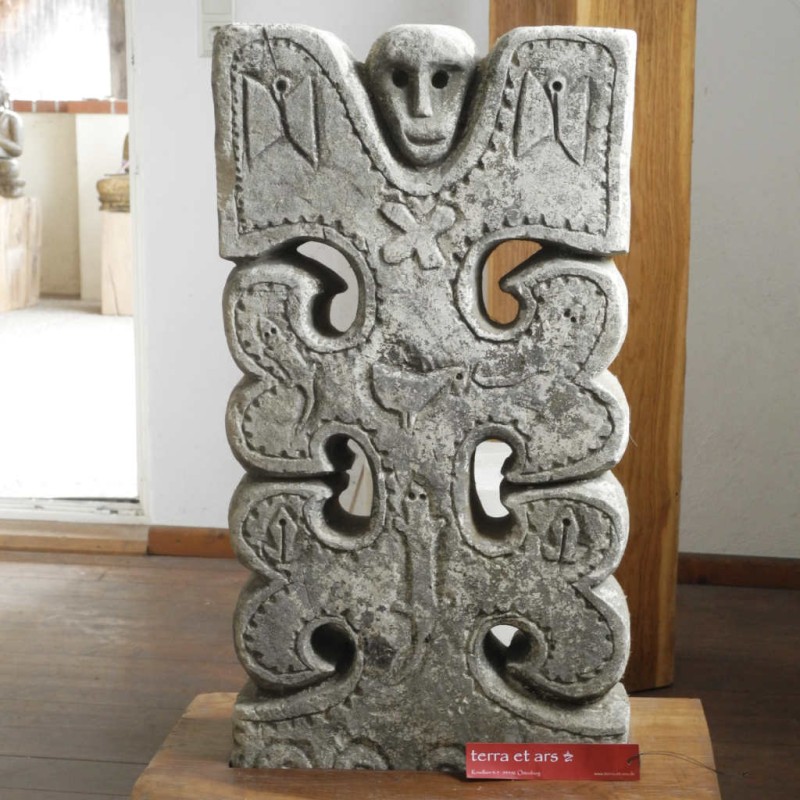 Das alte geheimnisvolle Indonesien zieht mit dieser außergewöhnlichen archaischen ostindonesischen Steintafel in Ihr Wohnambiente.